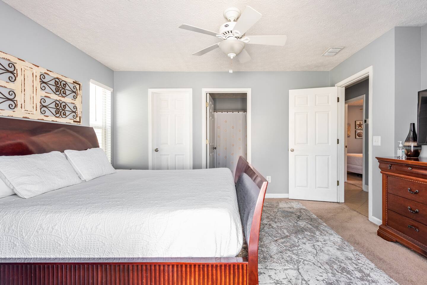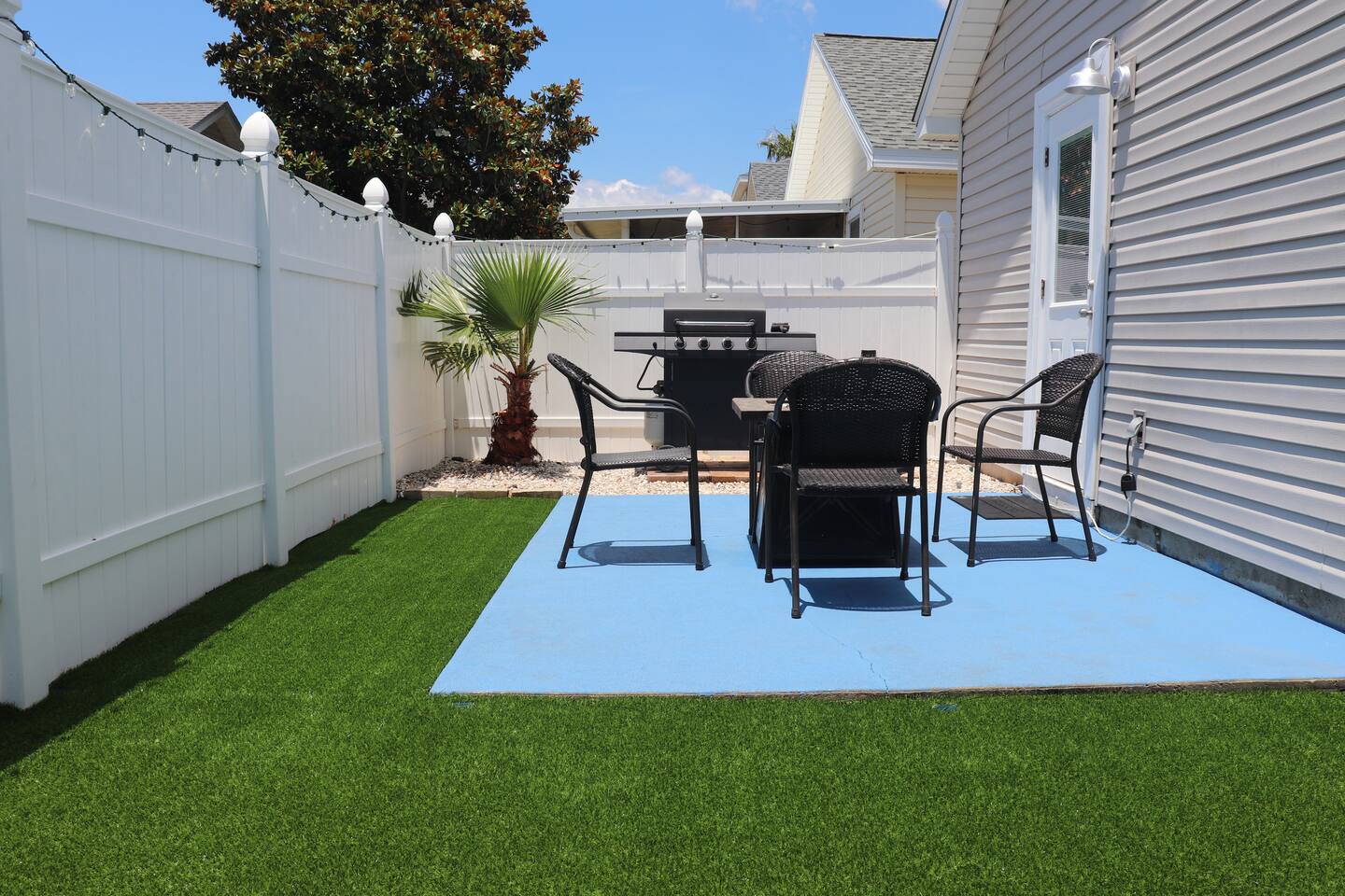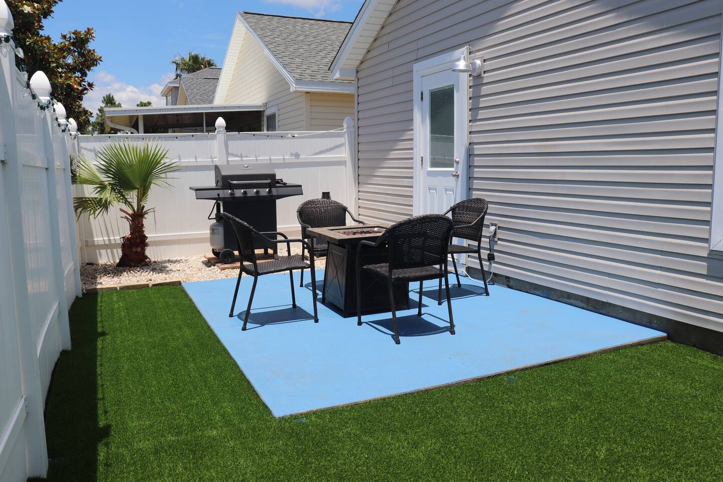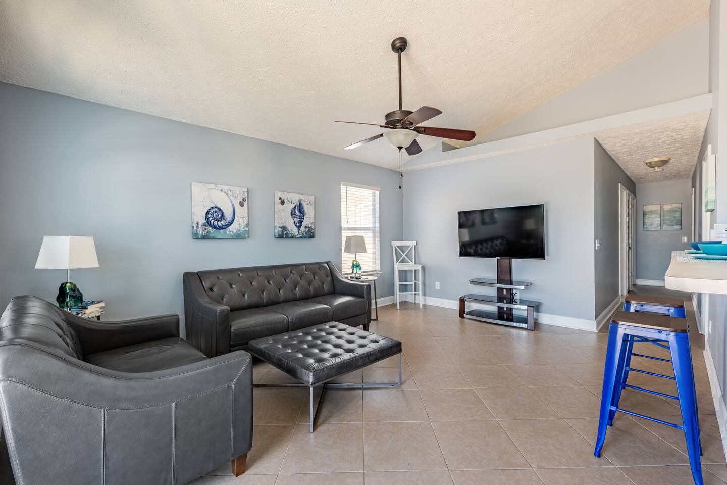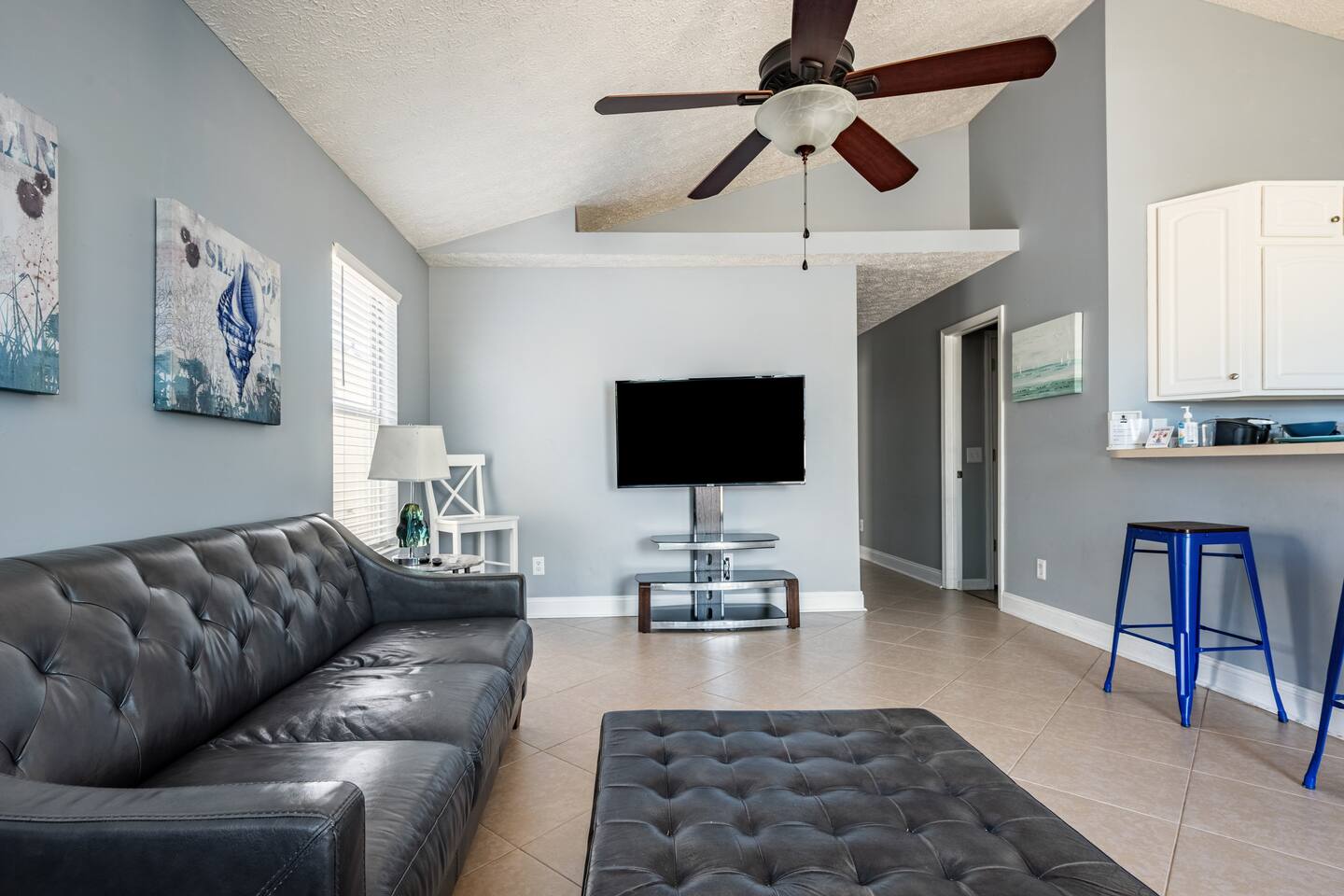 This delightful Panama City Beach house is designed to offer the ultimate getaway, providing a perfect blend of comfort and style. With its modern design and top-notch amenities, the home ensures a relaxing and convenient stay for all guests. The three spacious and cozy bedrooms, each equipped with Roku TVs, create the perfect space to unwind after a fun-filled day at the beach. Step outside to the backyard, where you can enjoy a breath of fresh air and take in the peaceful surroundings—ideal for relaxing after your beach adventures.