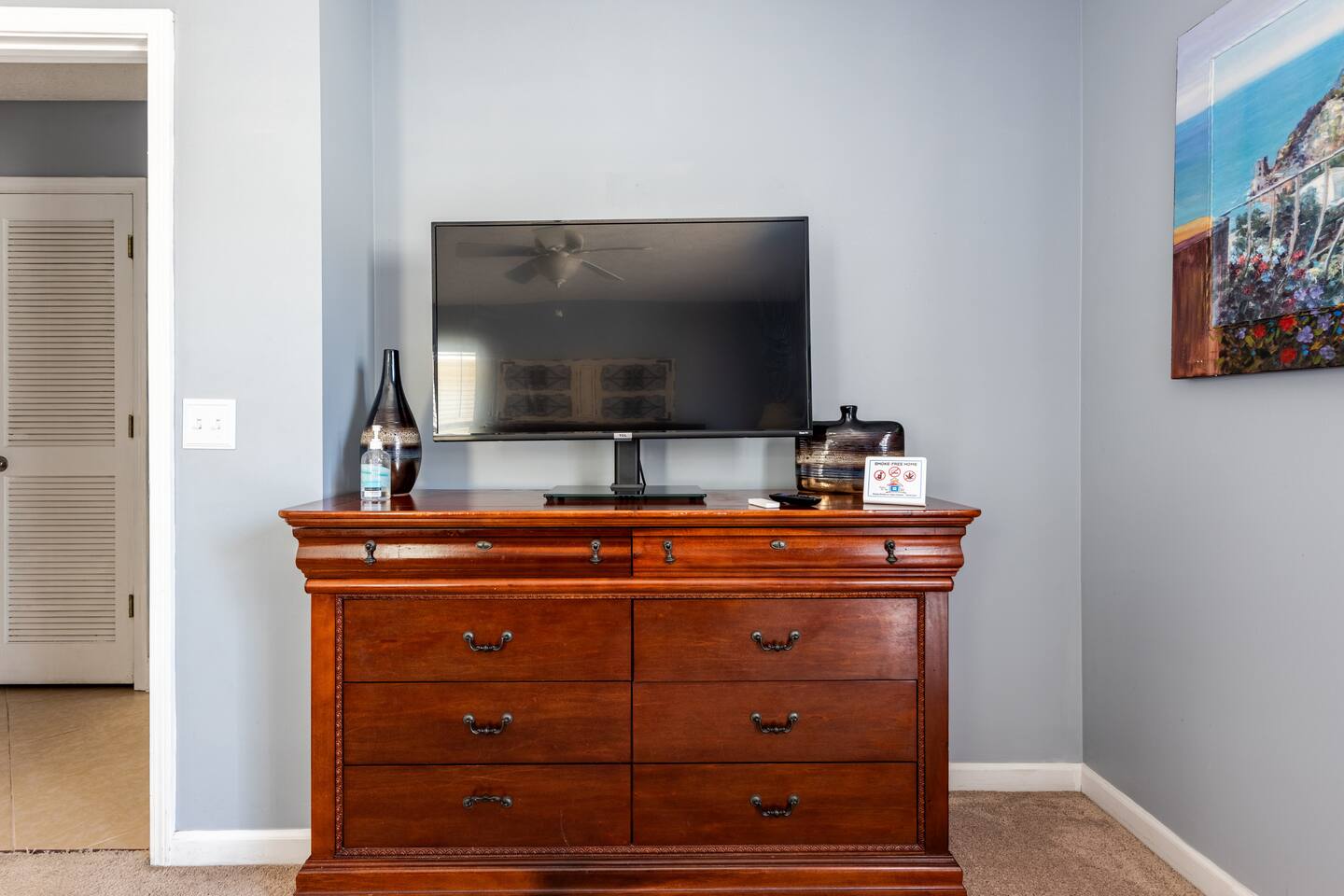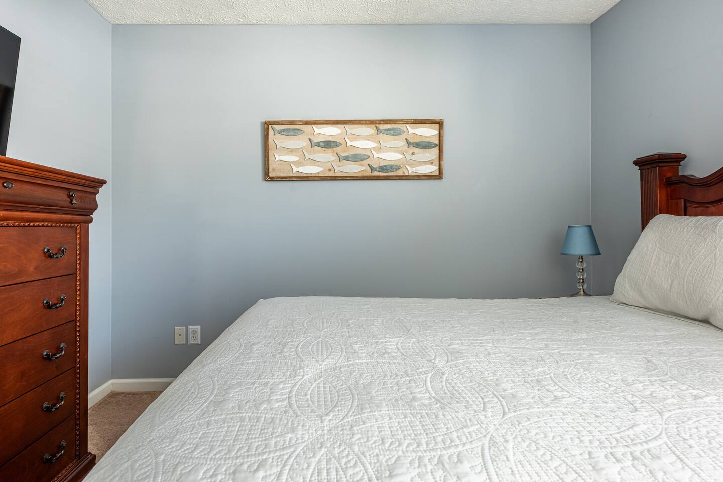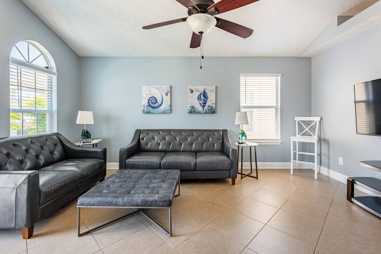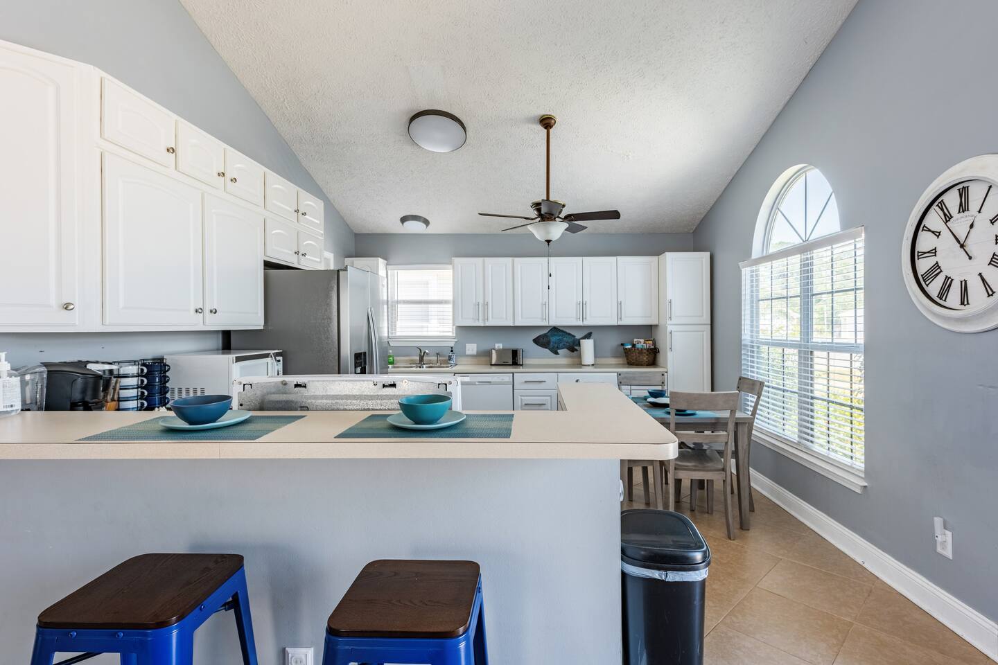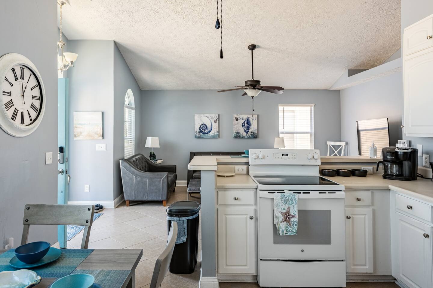 This delightful Panama City Beach house is designed to offer the ultimate getaway, providing a perfect blend of comfort and style. With its modern design and top-notch amenities, the home ensures a relaxing and convenient stay for all guests. The three spacious and cozy bedrooms, each equipped with Roku TVs, create the perfect space to unwind after a fun-filled day at the beach. Step outside to the backyard, where you can enjoy a breath of fresh air and take in the peaceful surroundings—ideal for relaxing after your beach adventures.