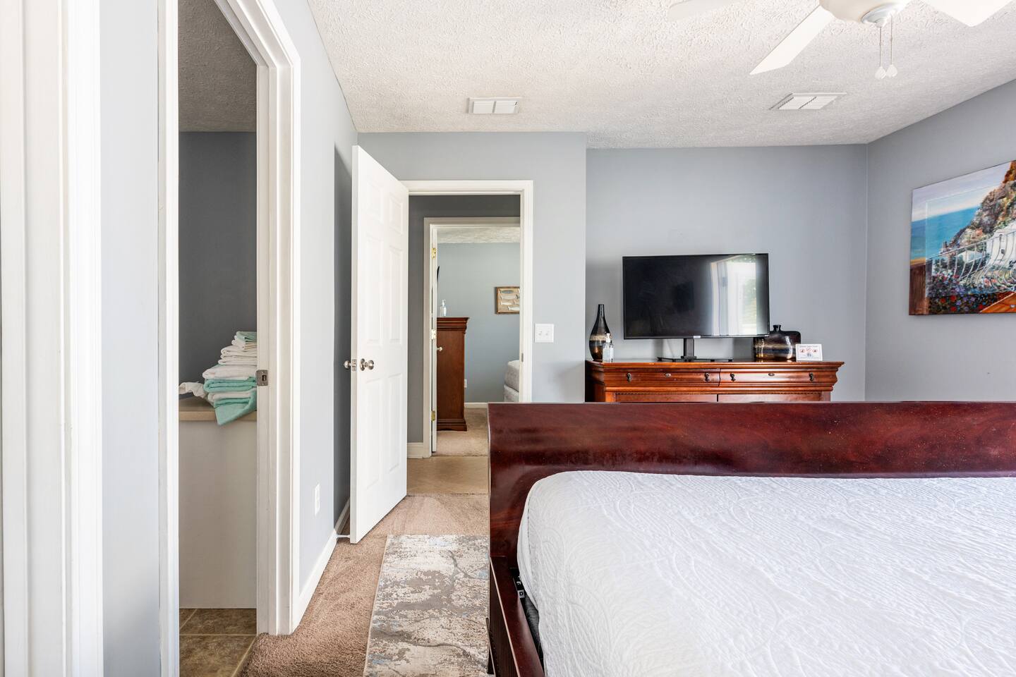 The home has been recently updated with a new king-sized bed, as well as new TVs and furniture in bedrooms 2 and 3. The living room also features brand-new furniture for added comfort.